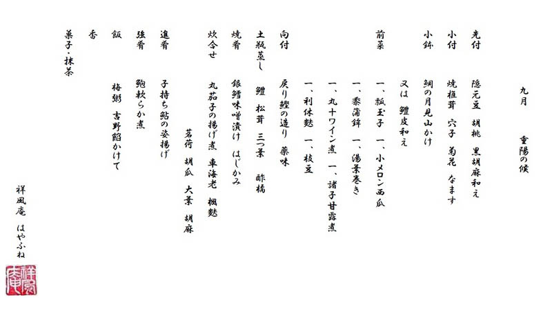 こちらの料理は茶懐石のお料理ではありません。会合の席等の会席料理です。