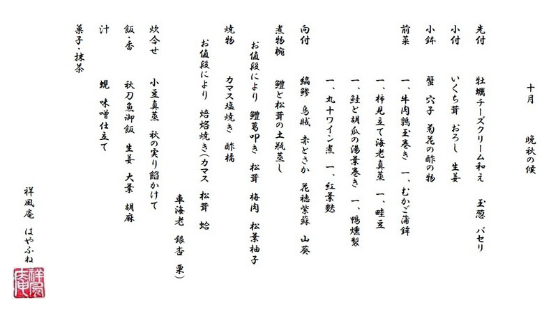 こちらの料理は茶懐石のお料理ではありません。会合の席等の会席料理です。